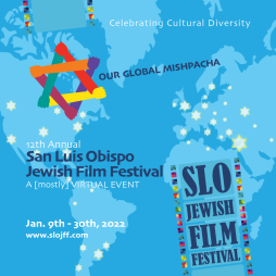 The Twelfth Annual San Luis Obispo Jewish Film Festival is coming your way January 9-30, 2022, online at www.slojff.com. The festival, noted for celebrating cultural diversity, is doing a deep-dive this year into further revealing how Jewish Culture and Jewish Faith are expressed all over the world. “Our Global Mishpacha” is this year’s theme. Mishpacha is the Hebrew term for family and friends.