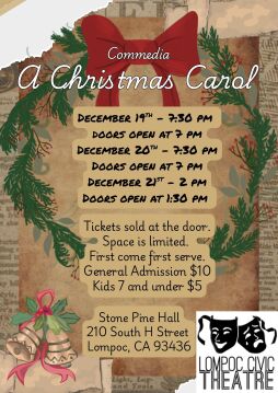 In this faithful adaptation of the Charles Dickens classic, a traveling troupe of Commedia Del Arte players recreate the Victorian World of "A Christmas Carol" on a bare stage in just one act. All of the many wonderful characters are played by only four actors with cleverness, skill, and comedy. Just as they would have done in Dickens own time the players bring their homemade costumes and props on stage with them. Sometimes frenzied but always fun this dynamic adaptation puts a fresh spin on one of our most beloved holiday stories. Fun for the whole family.