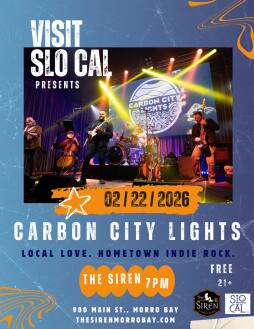 Carbon City Lights is taking the stage for a special hometown night presented by Visit SLO CAL. Celebrate SLO CAL with indie rock songs shaped by frontman Michael Venia’s Middle Eastern upbringing, reflecting his journey and the joy he’s found making this place his home.